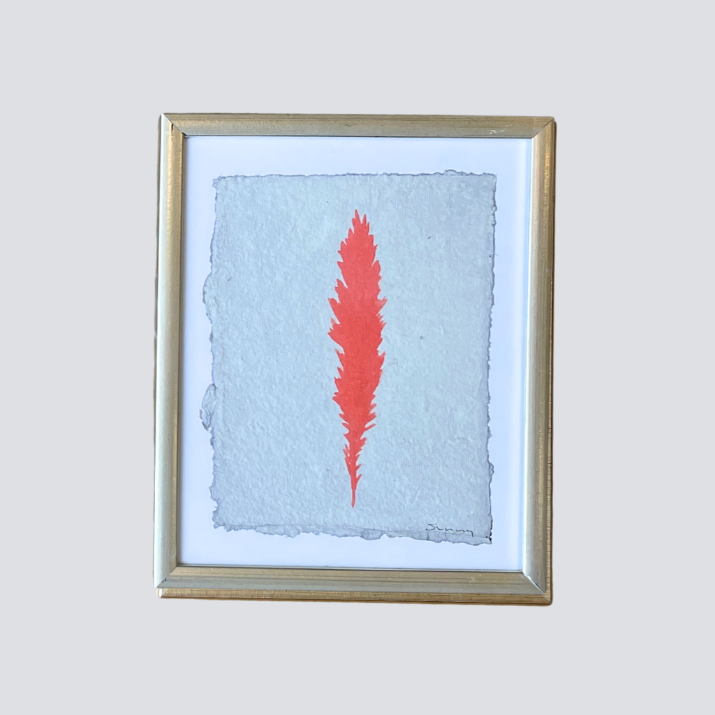 Each of Sunny Goode's Framed Angel Feather features an original hand-painted feather design on textured, deckled-edge paper. Set in a gold-toned 9x11 inch frame with a 1-inch white border, the 6x8 inch artwork radiates warmth and presence. The simplicity of the composition allows the feather to speak—offering a quiet symbol of comfort, connection, and care.