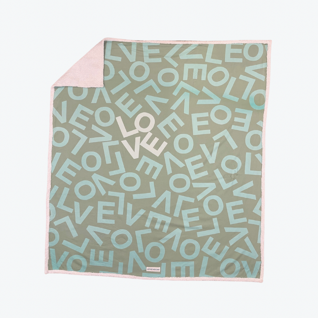 Our Large Sherpa Blanket combines a 100% cotton front featuring our signature LOVEVOLVE designs with an ultra-soft sherpa backing for the ultimate in warmth and comfort. Measuring 40" x 60", this oversized throw is perfect for couch cuddles, layering on your bed, or gifting to someone special.