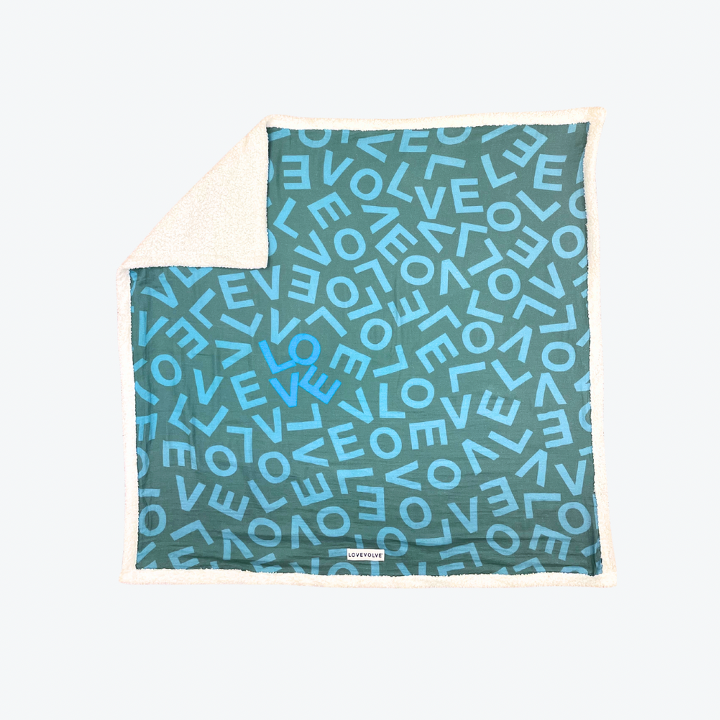 Our Medium Sherpa Throw Blanket blends a 100% cotton front in our signature LOVEVOLVE designs with an ultra-soft sherpa backing for the perfect balance of style and comfort. Measuring 45" x 45", it’s the ideal size for toddlers, travel, or adding a cozy layer to your favorite chair.