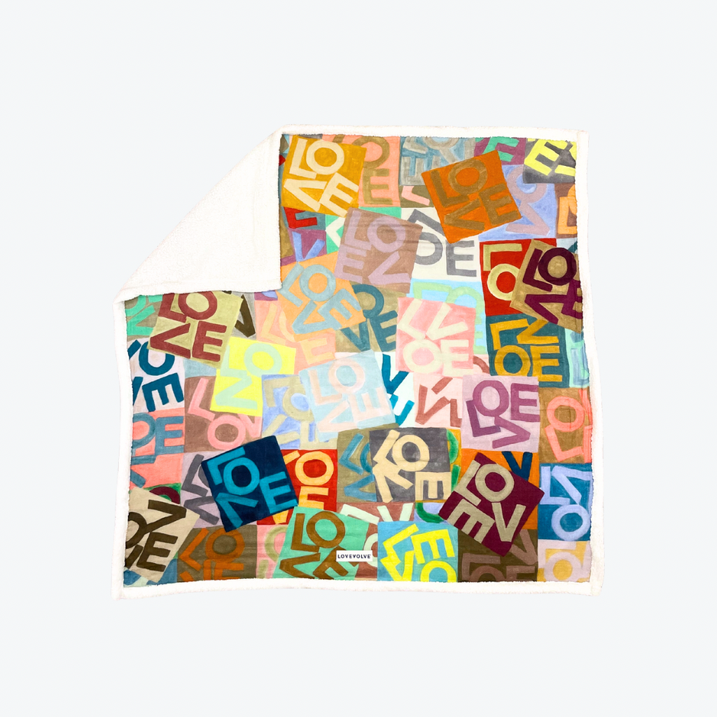 Our Medium Sherpa Throw Blanket blends a 100% cotton front in our signature LOVEVOLVE designs with an ultra-soft sherpa backing for the perfect balance of style and comfort. Measuring 45" x 45", it’s the ideal size for toddlers, travel, or adding a cozy layer to your favorite chair.