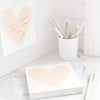 A blank canvas for all the things. This chunky notepad is perfect for lists, reminders, love notes, and everything in between. With pale pink painted edges and crisp white pages, it’s a Sugar Paper favorite that brings both function and beauty to your desk.