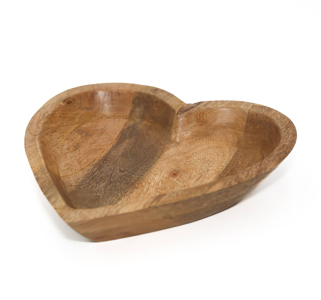 Heart-Shaped Mango Wood Bowl – Food Safe, Decorative & Gift-Ready Give a gift straight from the heart with this stunning heart-shaped mango wood bowl, handcrafted from sustainably sourced mango wood. Featuring beautiful natural grain and a smooth, food-safe finish, this bowl is perfect for serving fruits, bread, snacks, or salads — or simply displayed as an eye-catching centerpiece. It’s a heartfelt choice for weddings, anniversaries, Valentine’s Day, Mother’s Day, or housewarming gifts. ✅ Hand-carved from sustainable mango wood — eco-friendly and artisan-made ✅ Food-safe finish — safe for serving food or snacks ✅ Decorative & functional — use as a centerpiece, fruit bowl, bread basket, or accent piece ✅ Each piece is unique — no two bowls are exactly alike due to natural wood grain variations ✅ Care: Hand wash only; do not soak or place in dishwasher 16x16x4"