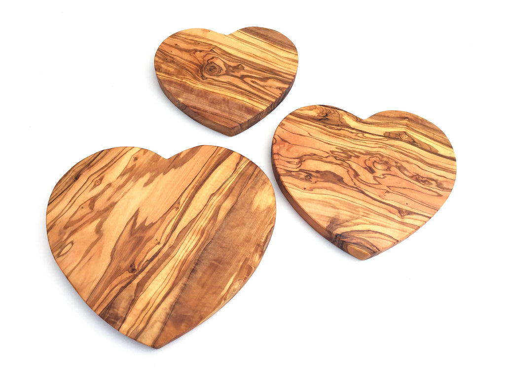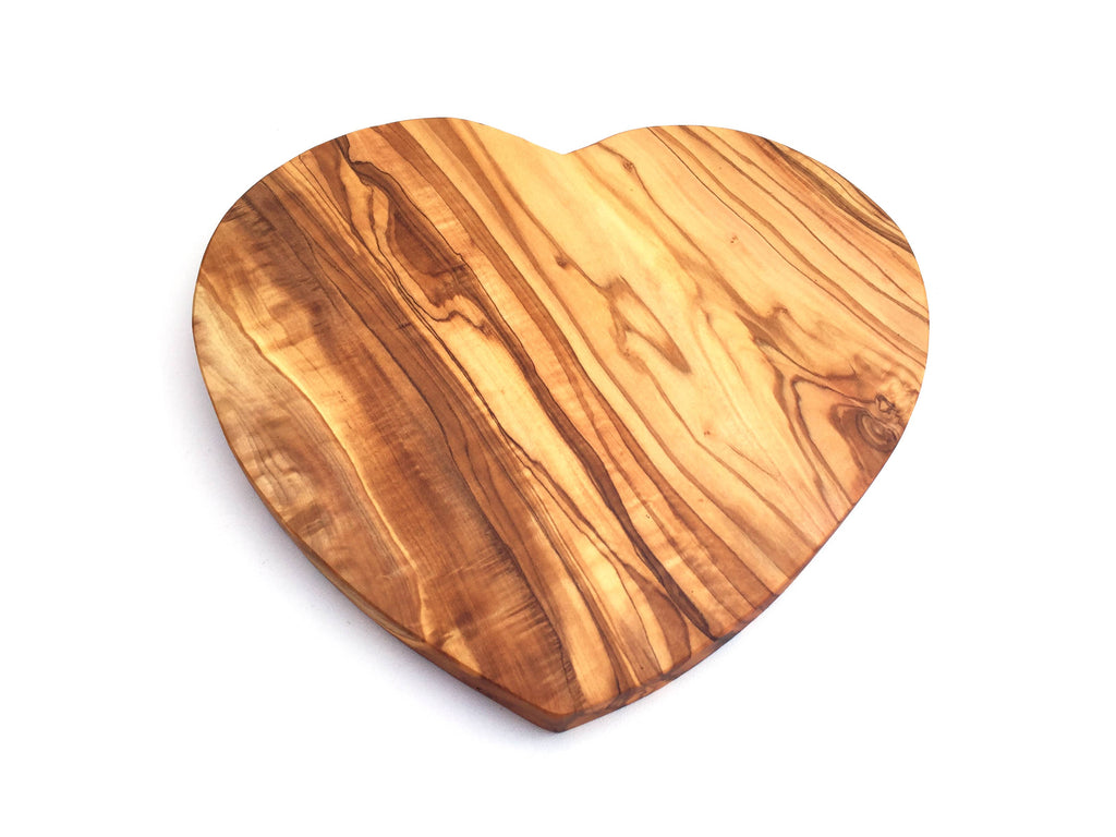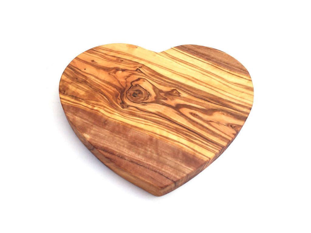 The “Heart” serving board is made of olive wood and is handmade. The unique reddish-brown grain with an irregular grain pattern on a smooth surface makes the olive wood serving board something extraordinary. It is not only suitable as a serving board, but can also be used as a cheese board or serving plate. Dimensions (approximate): Small: length 18cm x width 16cm x thickness 1.5cm Each item is unique and differs not only in shape/dimensions, but also in grain/color. Clean the unique item with water and, if necessary, a little detergent. Rub periodically with a little vegetable oil. Not dishwasher-safe.