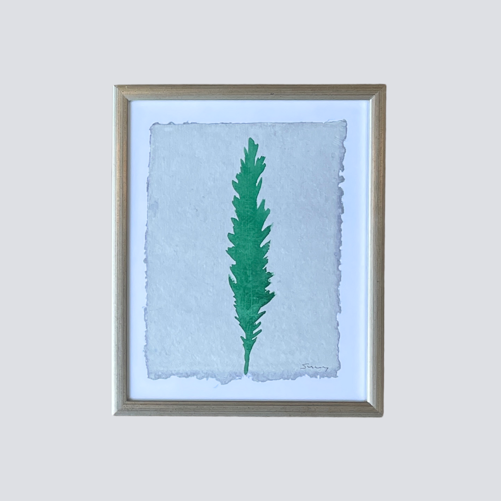 Each of Sunny Goode's Framed Angel Feather features an original hand-painted feather design on textured, deckled-edge paper. Set in a gold-toned 9x11 inch frame with a 1-inch white border, the 6x8 inch artwork radiates warmth and presence. The simplicity of the composition allows the feather to speak—offering a quiet symbol of comfort, connection, and care.