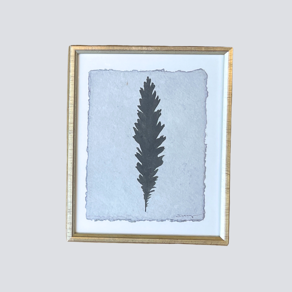 Each of Sunny Goode's Framed Angel Feather features an original hand-painted feather design on textured, deckled-edge paper. Set in a gold-toned 9x11 inch frame with a 1-inch white border, the 6x8 inch artwork radiates warmth and presence. The simplicity of the composition allows the feather to speak—offering a quiet symbol of comfort, connection, and care.