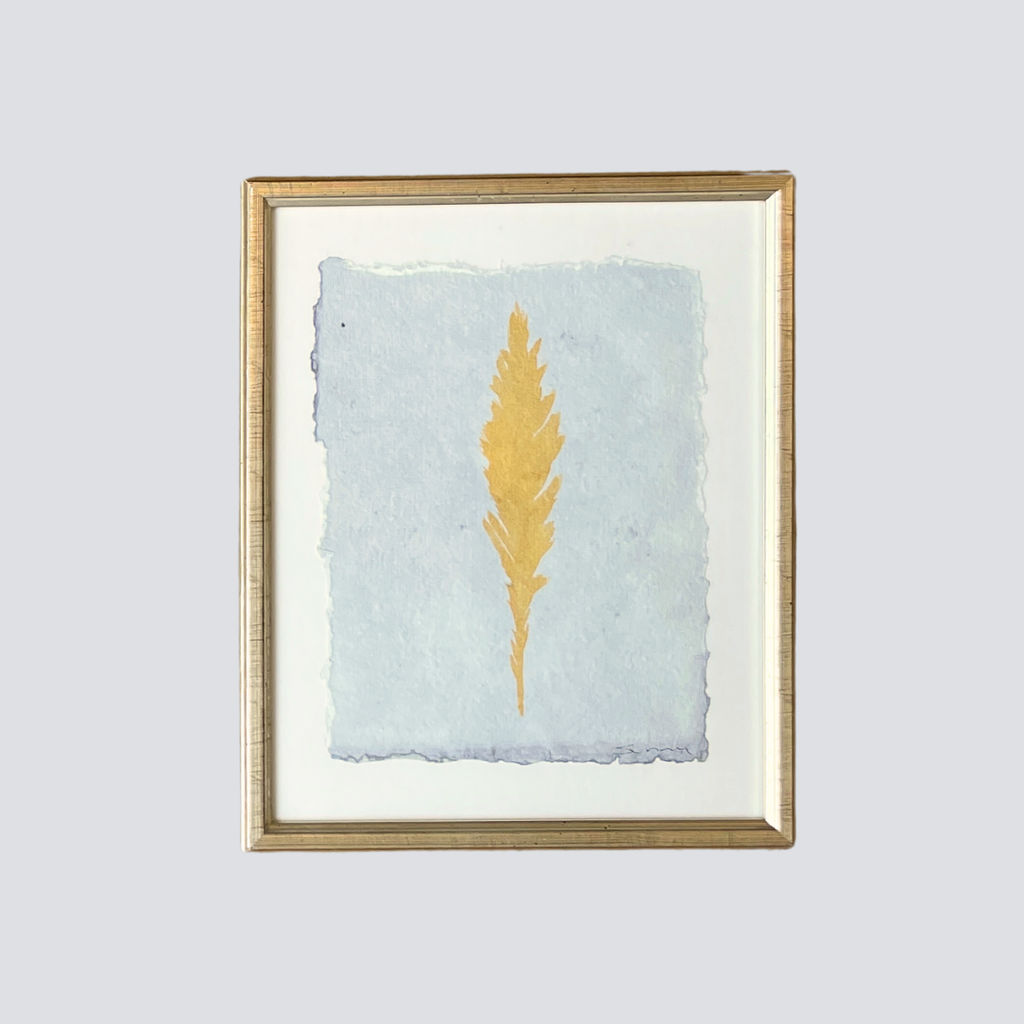 Each of Sunny Goode's Framed Angel Feather features an original hand-painted feather design on textured, deckled-edge paper. Set in a gold-toned 9x11 inch frame with a 1-inch white border, the 6x8 inch artwork radiates warmth and presence. The simplicity of the composition allows the feather to speak—offering a quiet symbol of comfort, connection, and care.