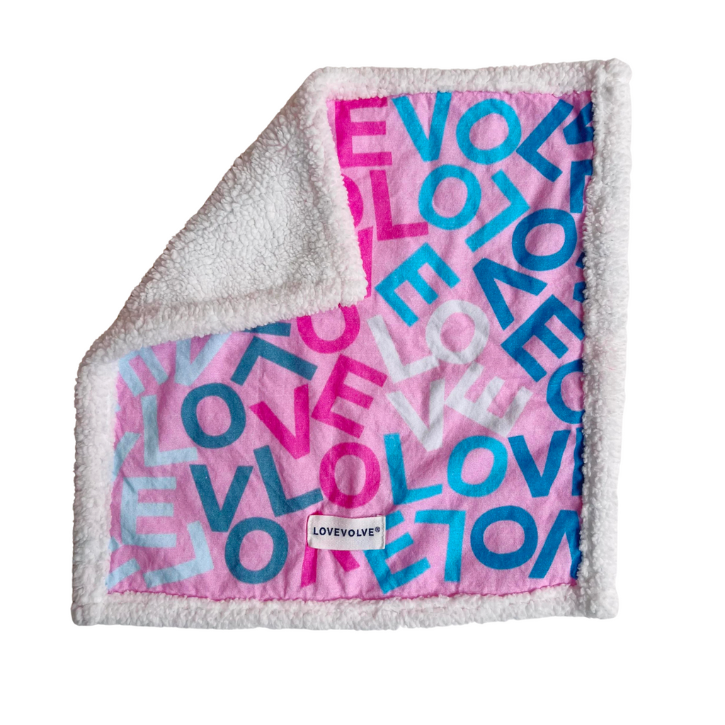 Our Sherpa Lovie is the perfect snuggle companion for little ones. Featuring a 100% cotton front in our signature LOVEVOLVE ombré print and an ultra-soft sherpa backing, this 15" x 15" lovie is gentle, cozy, and made for everyday comfort.