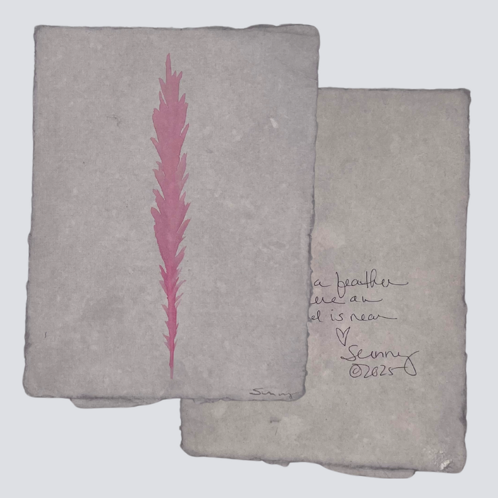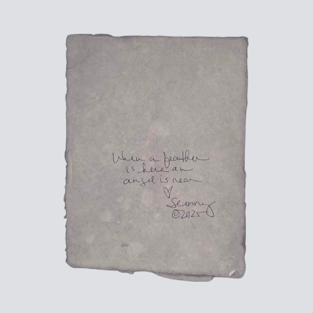 Sunny Stack Goode’s XL Angel Feathers are luminous watercolor artworks that celebrate the ethereal beauty of feathers as symbols of love, memory, and spiritual connection. Measuring approximately 6 x 8 inches, each piece is hand-painted and framed, making it a meaningful keepsake or gift.