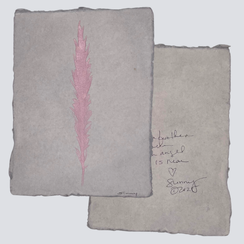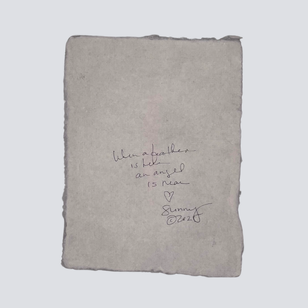 Sunny Stack Goode’s XL Angel Feathers are luminous watercolor artworks that celebrate the ethereal beauty of feathers as symbols of love, memory, and spiritual connection. Measuring approximately 6 x 8 inches, each piece is hand-painted and framed, making it a meaningful keepsake or gift.